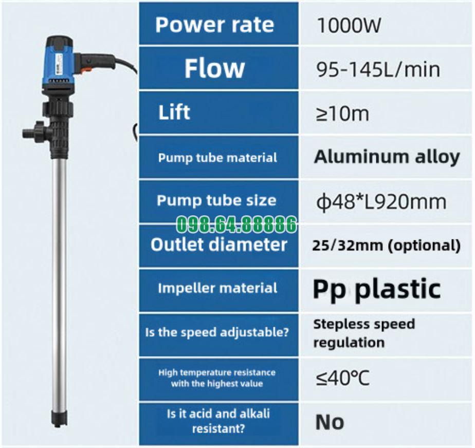 Bơm dầu thùng phuy JDT-1000W-L92 thay thế các phương pháp bơm tay nặng nhọc, giúp công nhân thao tác nhẹ nhàng hơn, giảm mệt mỏi và tăng năng suất làm việc.
