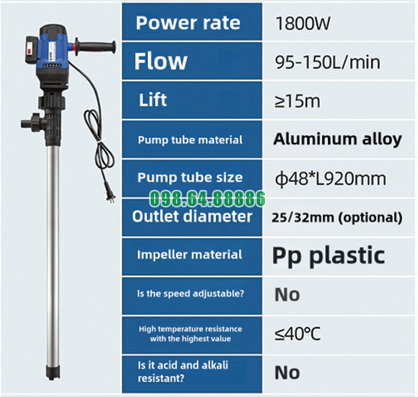 Hiệu suất làm việc của bơm điện thùng phuy cao cấp JDT-1800W-L92