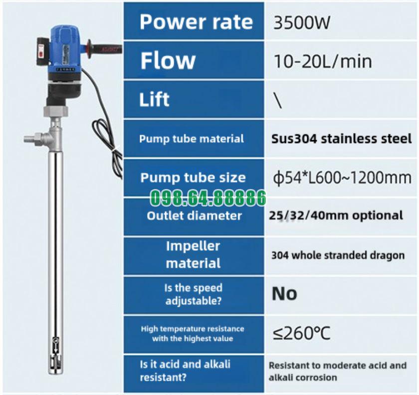 AES không phải là chất lỏng loãng hoàn toàn như nước, nên quá trình bơm hút cần thiết bị có lực đẩy ổn định. Đây là lý do Bơm điện cầm tay dạng trục đứng JDT-3500W-JLG260 được xem là phù hợp trong các công việc chiết rót AES ở quy mô kho xưởng và sản xuất.