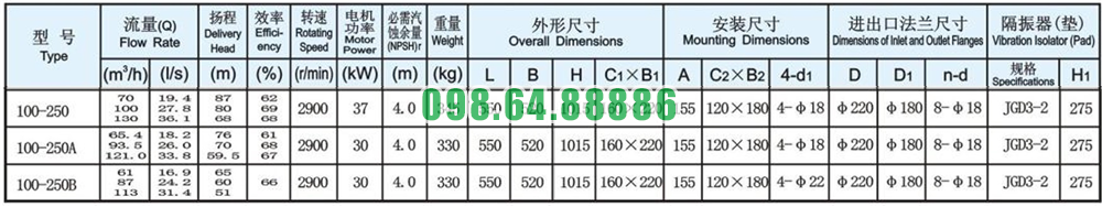 Máy bơm inline, bơm đa tầng cánh đứng ISG100-250, IRG100-250 11kw, 100m3, 20m